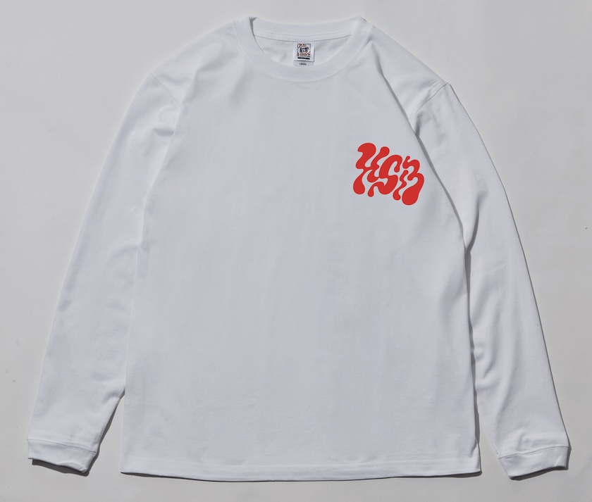 さらに胸元には同店のイニシャルを歪んだように表現した、アイコニックなロゴデザインをワンポイントでプラス。ベースとなるボディがホワイトなだけに、ホットソースを思わせるビビッドレッドのプリントカラーが主張されています。