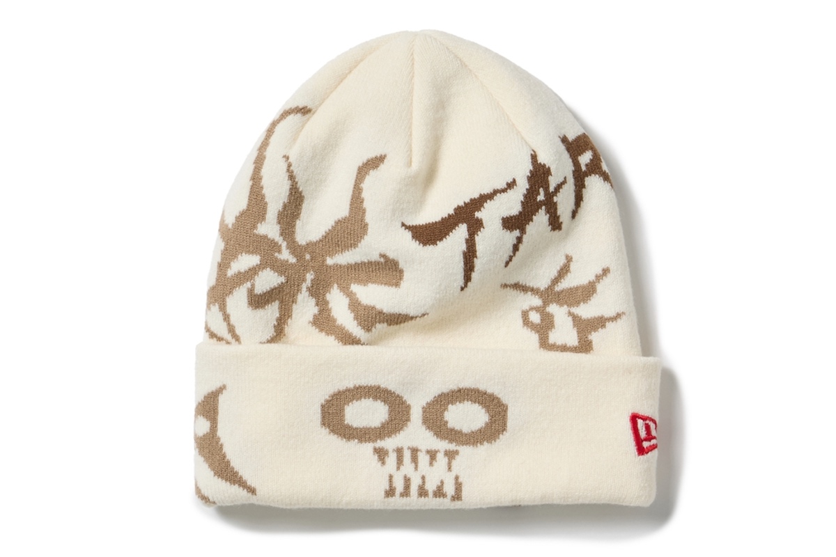 軽い被り心地で保温性満点のアクリルニットを、ジャガードで入れ込んださまざまなアイコン&メッセージによってデコレートした。サイドに刺繍で入るニューエラの赤いフラッグロゴがさり気ないアクセントに。