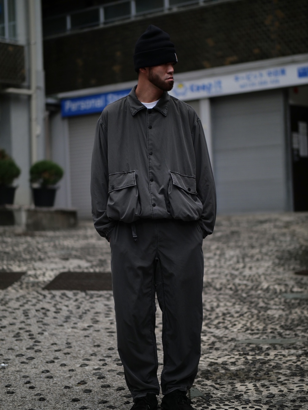 前回リリースされたコーチジャケットをアレンジ。フロントはマットなメタルボタンを使用し、無骨なイメージに。裾に配したドローコートで、シルエットを自在に変化することができます。