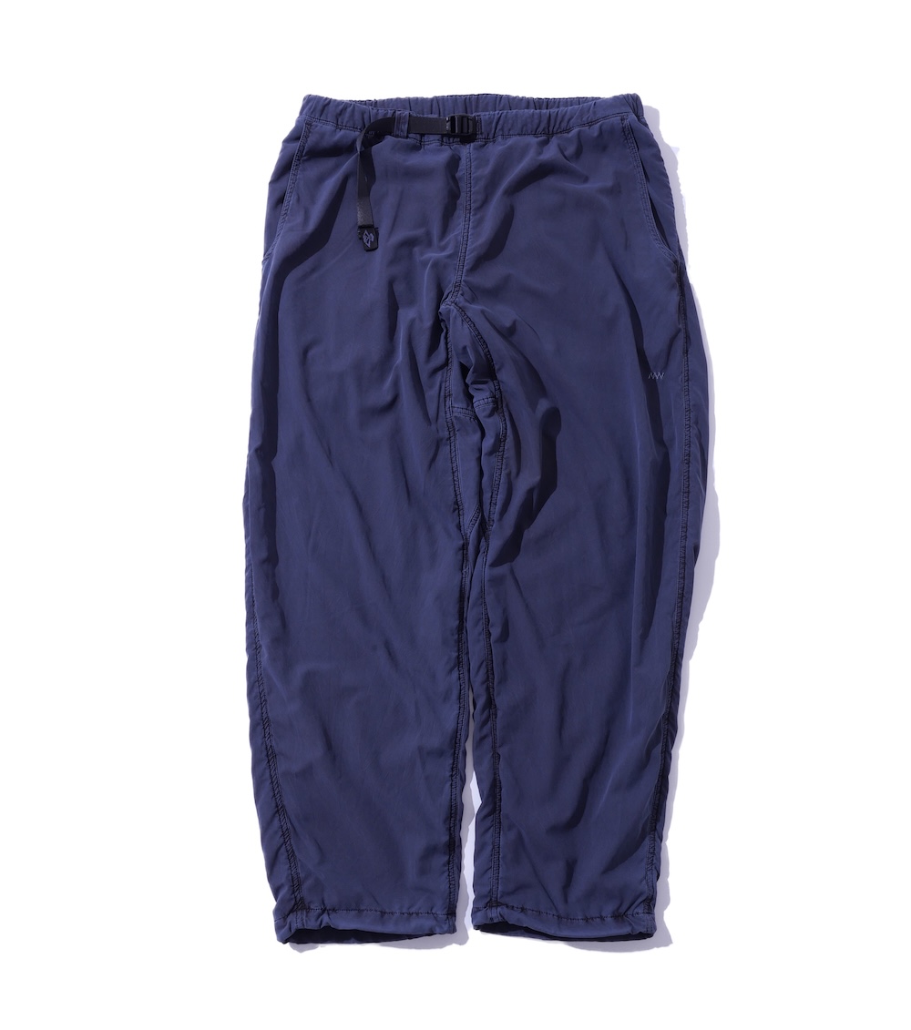 「ストーンマスター」を象徴するクライミングパンツをベースに、腰回りから裾にかけてテーパードを効かせた一本。別注の証として、裾にドローコードを追加しています。