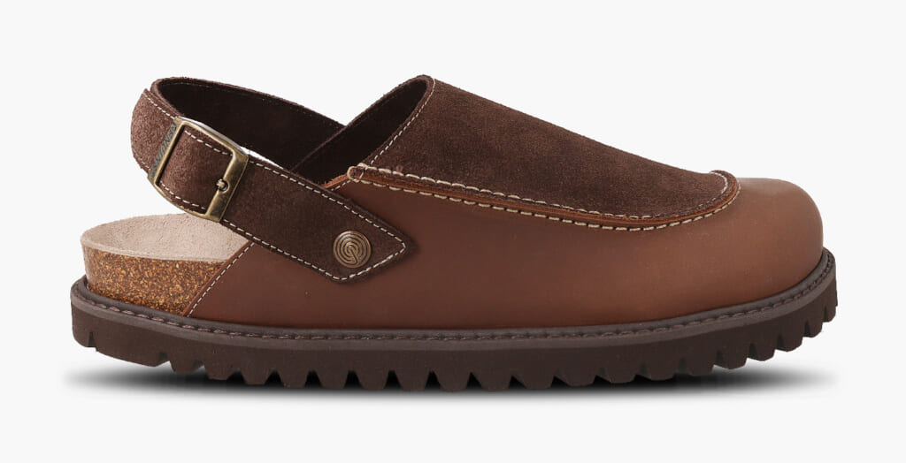 他モデルと同様に、こちらも人体構造に基づいて設計されたフットベッドを用い、足への圧力を分散して疲労を軽減する。カラーはクレイとブラウンの2種を用意。