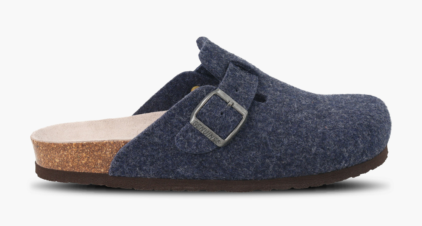 最後はクロッグタイプでプレーンなシルエットの“RIVA(リバ)”。アッパー部に本革スエードを用い、内側とフットベッドにウールボアを配してホカホカに! この天然羊毛はカラー(マンドルラorブラック)に応じて異なる色を採用しているのもポイントだ。