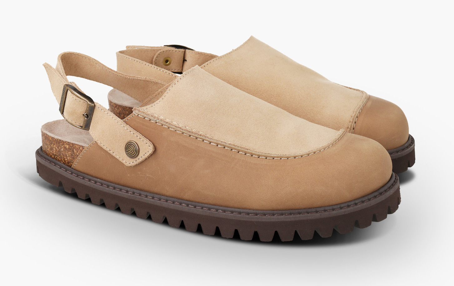 他モデルと同様に、こちらも人体構造に基づいて設計されたフットベッドを用い、足への圧力を分散して疲労を軽減する。カラーはクレイとブラウンの2種を用意。