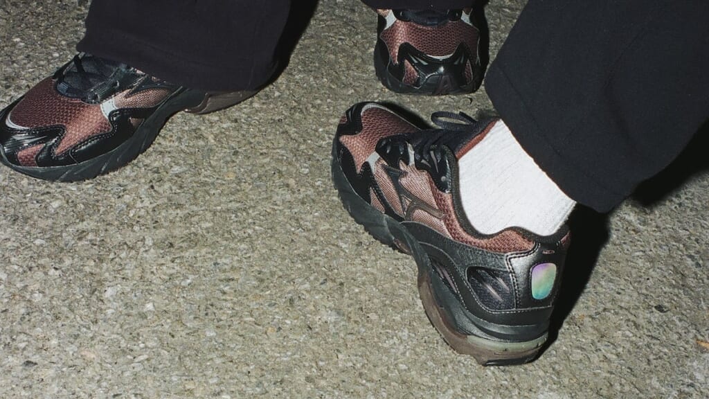 クッショニングと安定性を両立させたミズノの代表モデルに、前作と同じく“Street Knowledge”をテーマとしたアレンジをプラス。ダークトーンでまとめつつ、さり気ない挿し色や異素材使いによって個性的に仕上げられている。また、アスファルトに滲むオイルの反射を思わせる、ヒールの7色リフレクターもポイントだ。