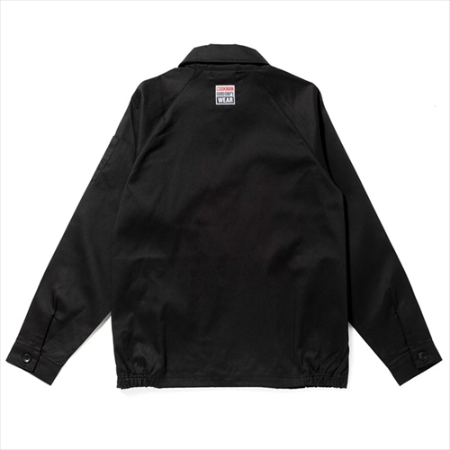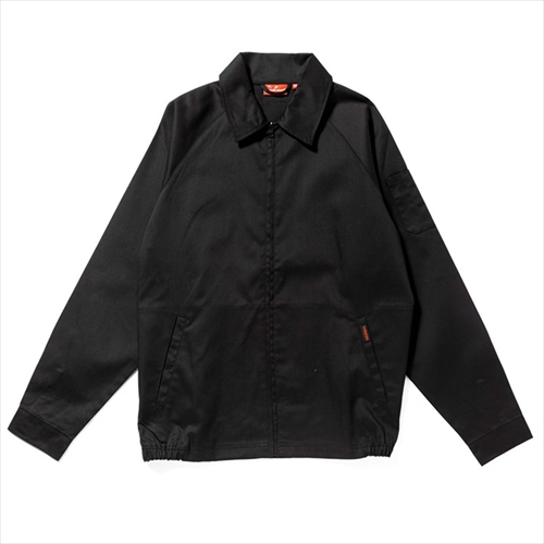 レストランのデリバリースタッフのために作られた、アームにペン刺しを備えた定番ジャケットがベース。黒が基調としたカラーリングで背面に施したコラボのロゴを主張。