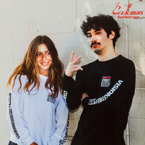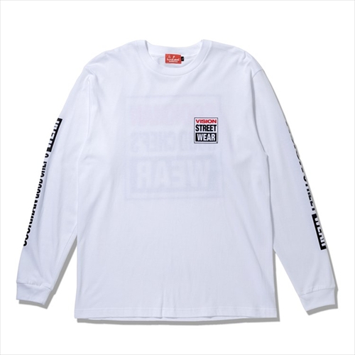 フロントとバックのボックスロゴ、アームにヴィジョンのブランドネームをそれぞれに配置。ロゴを大胆にアピールしたロングスリーブTは、この一枚でコーディネートの主役に。