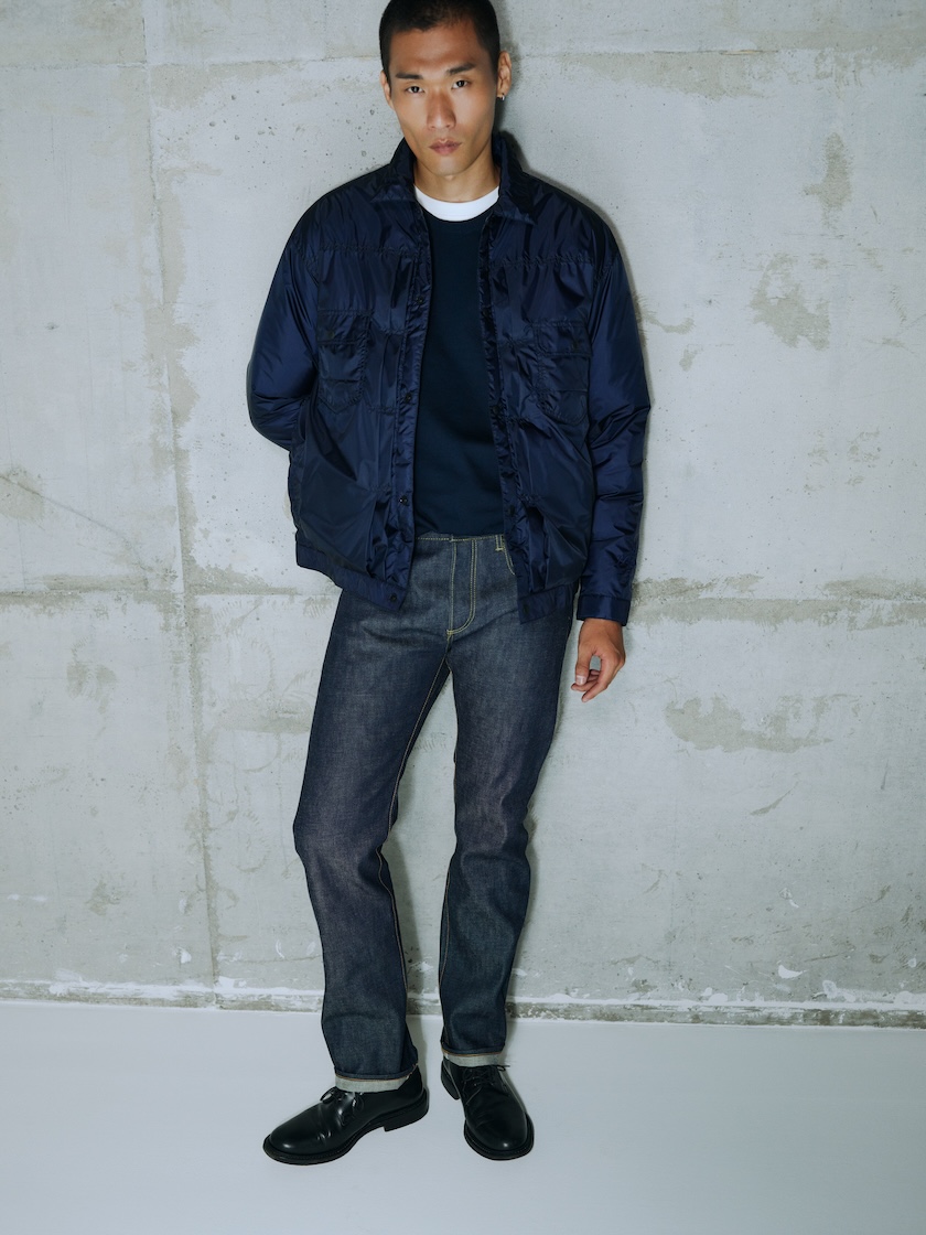 デンハムの定番デニムジャケット“TRACE”の2ndタイプを、ナンガの“AURORA-TEX®︎ LIGHT”で表現。ダウン量をあえて抑えることで、インナーとしても使える高い汎用性を発揮します。