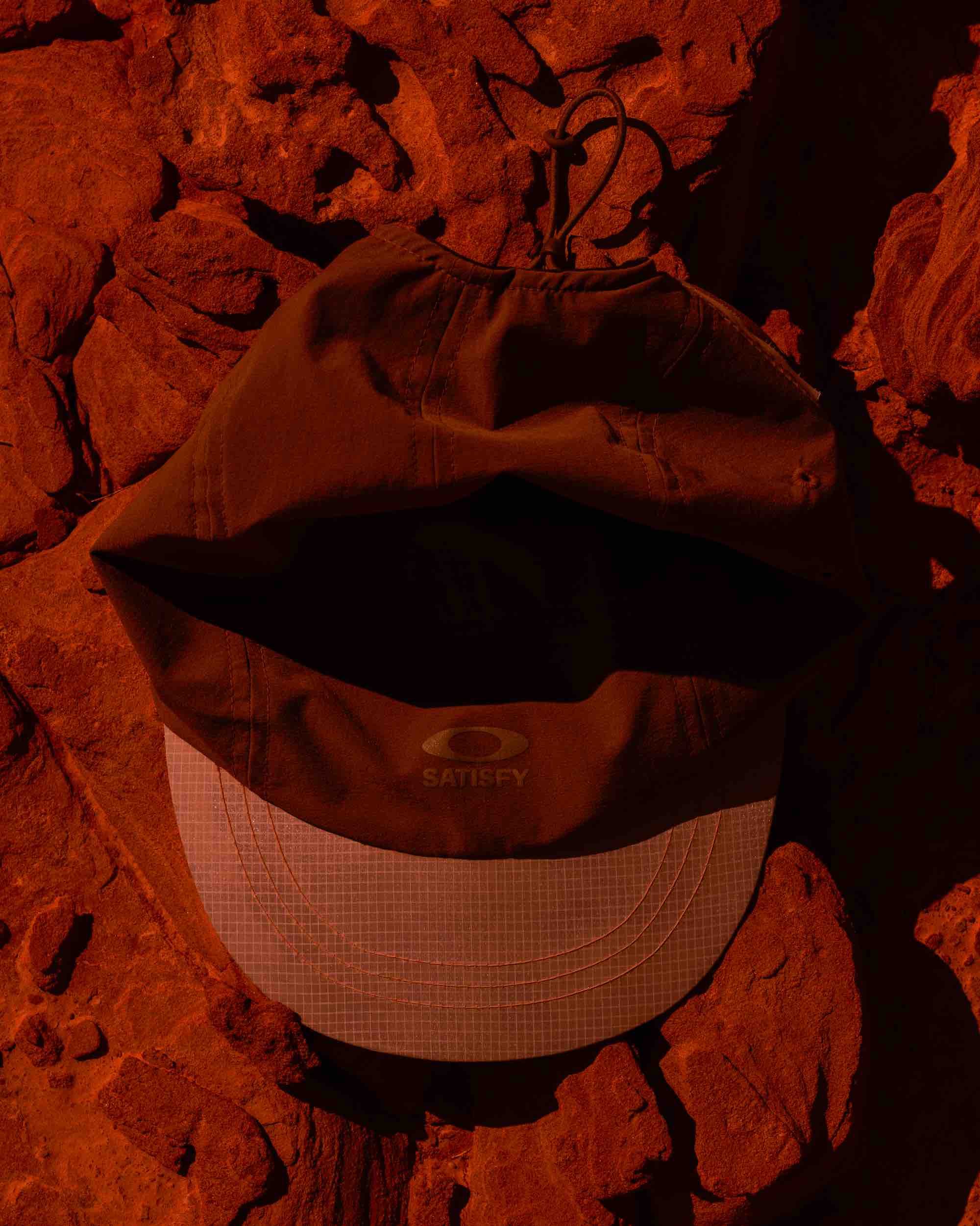 バンダナの“SATISFY × Oakley Rippy™”は日本製素材「Rippy™」を使い、軽量で通気性が高く、砂埃や熱にも強いリップストップ構造。トレイルやフェスなど、長時間の外遊びでもストレスなく着用できます。