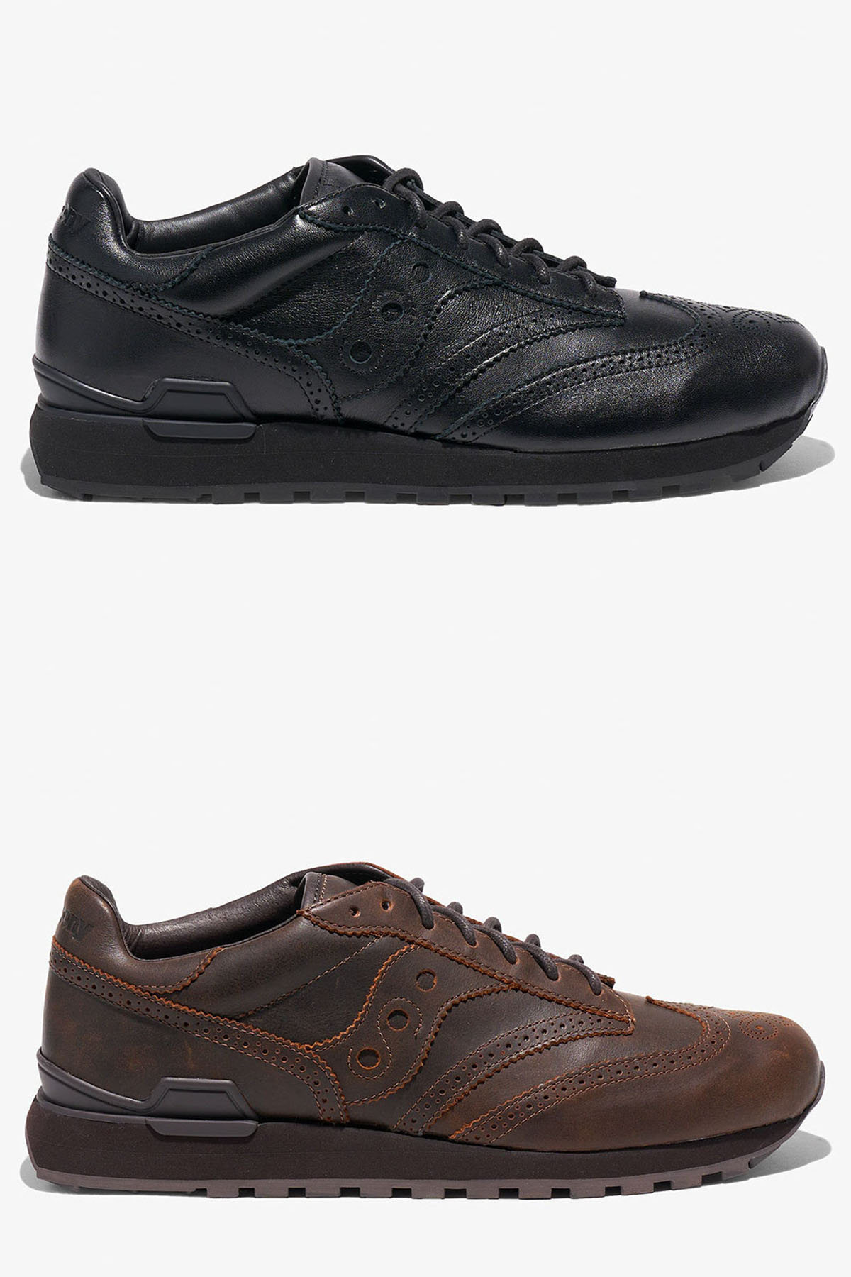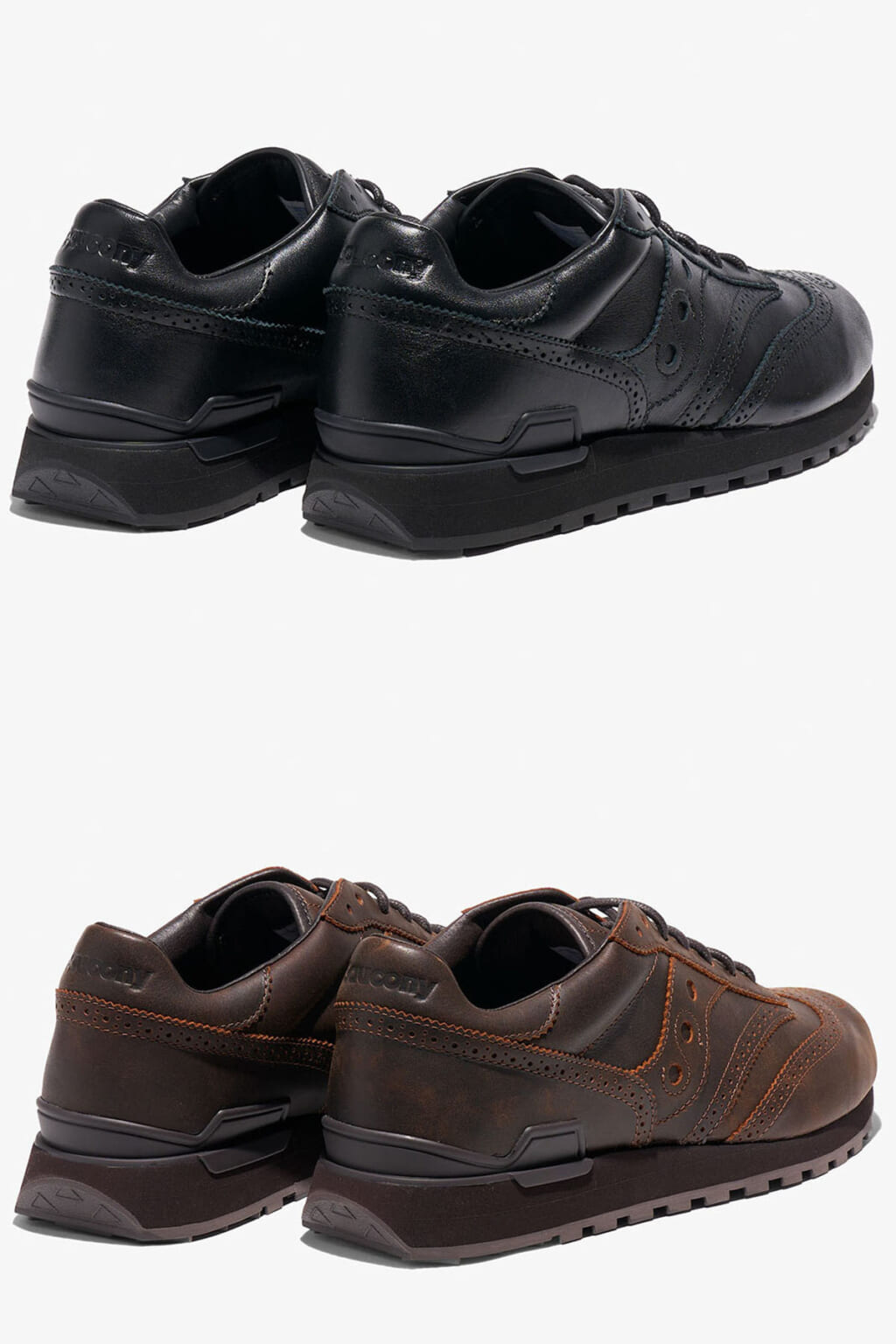 ドレスシューズに見られるトラディショナルな様式美を見せながら、サイドとヒールは「Saucony」本来のスニーカースタイルをキープし、クラシックとモダンをさりげなく両立させている。カラーはブラックとブラウンの2色展開。