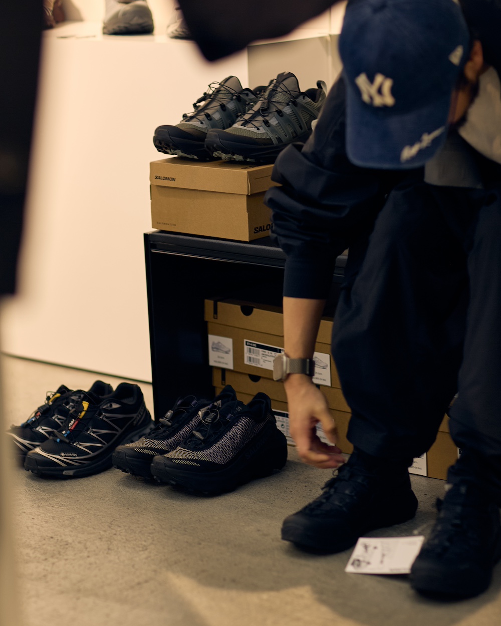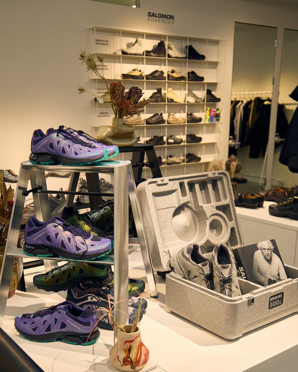 同店では、サロモンスポーツスタイルのシューズの取扱いをいち早くスタートし、限られたセレクトショプのみで展開されているファッション性を重視したライン“ADVANCED”シリーズも展開。