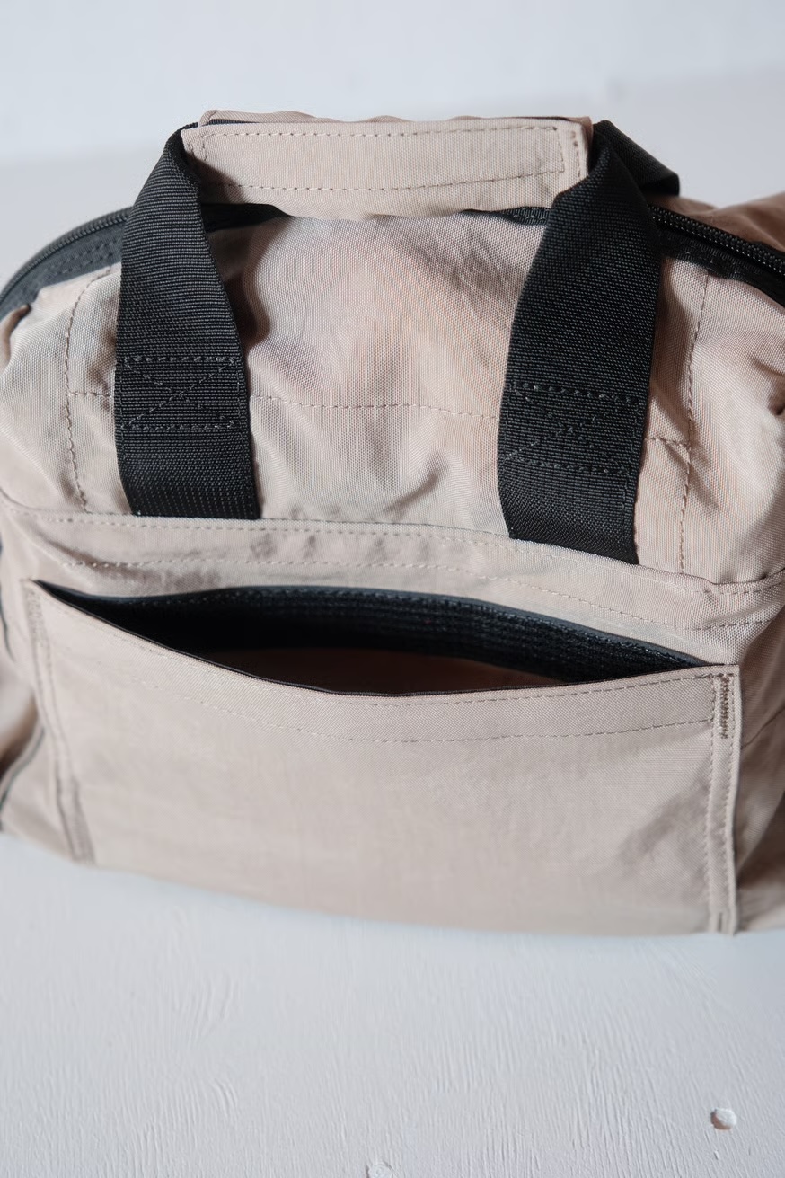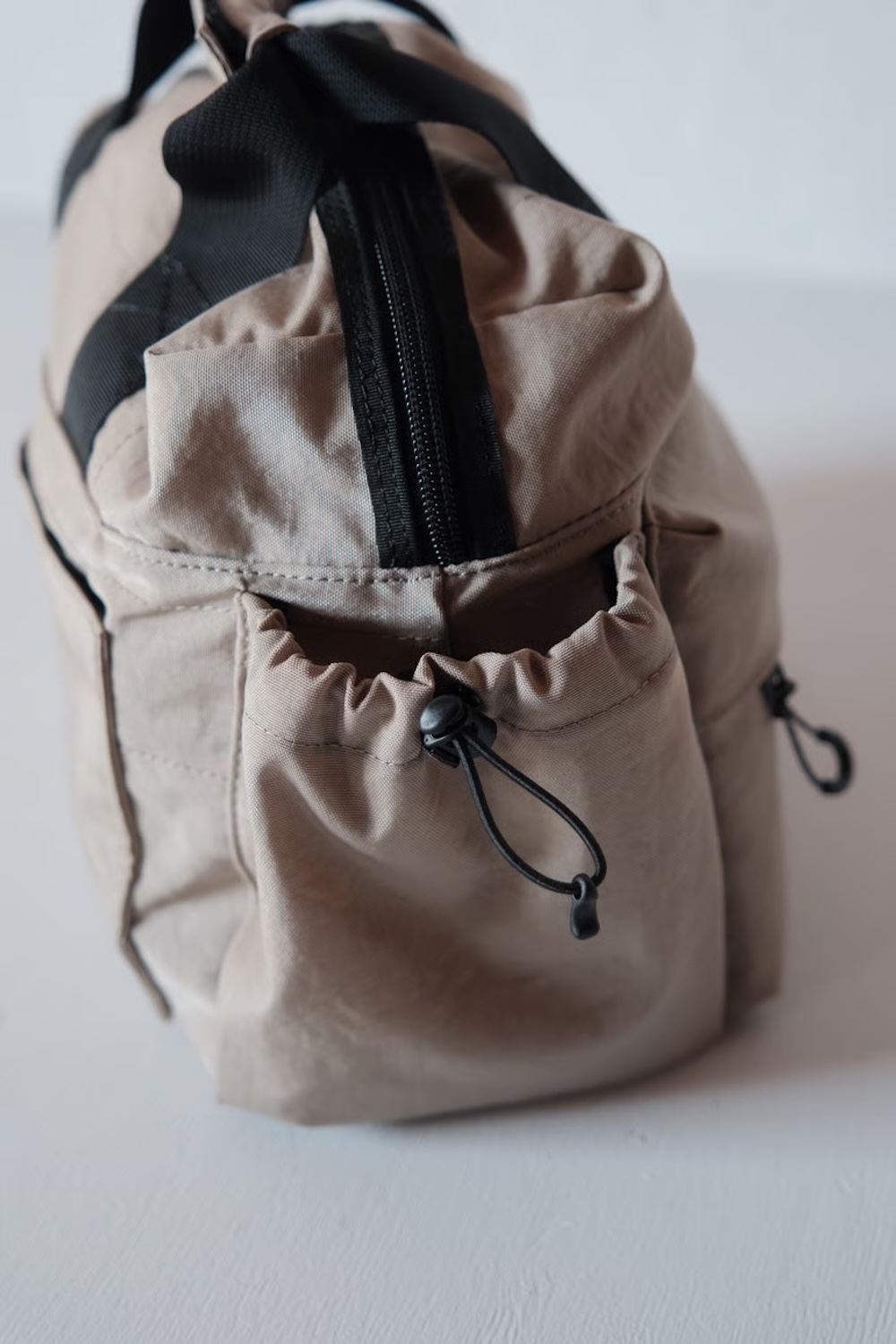 柔らかい風合いとナチュラルな表情が特徴のナイロン素材を使用し、手さげでも付属のコードを取り付けてショルダーバッグとしても使用可能な本作。