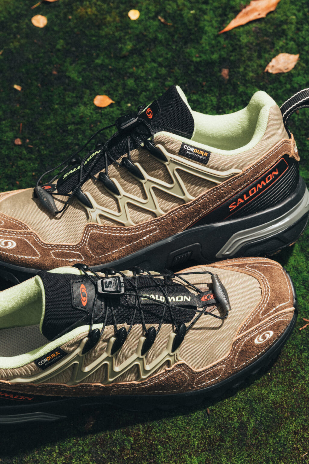 XT-6 EXPANSE は、高級感のある伝統を汲んだ素材を、ステッチが施されたパネルと 「Salomon」独自のフィットテクノロジー SensiFit™ で重ね合わせながら、足と一体化したような快適性を提供してくれる。シューレースはあえて昔ながらのレースアップ仕様を採用。