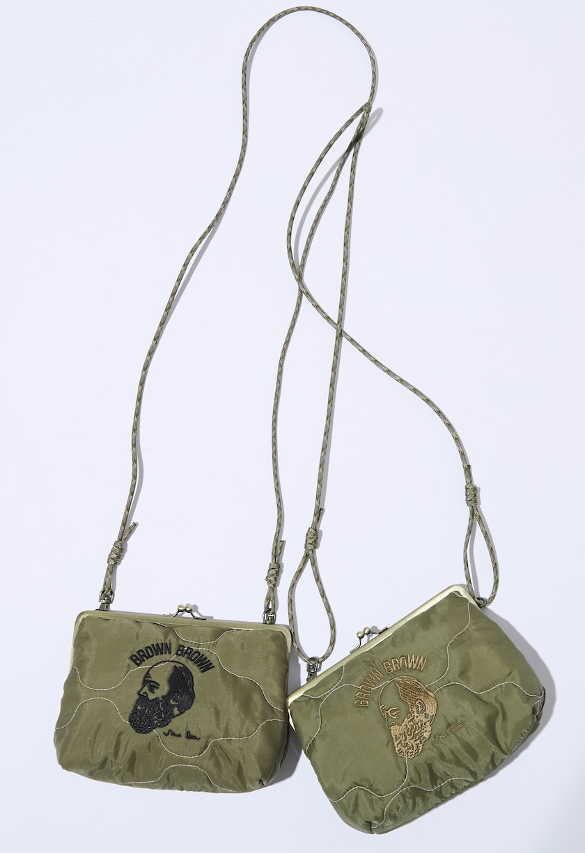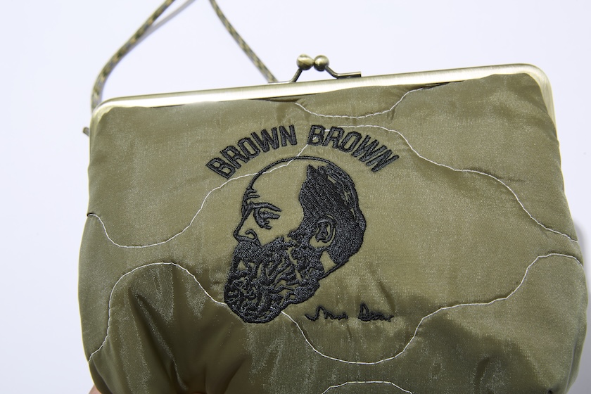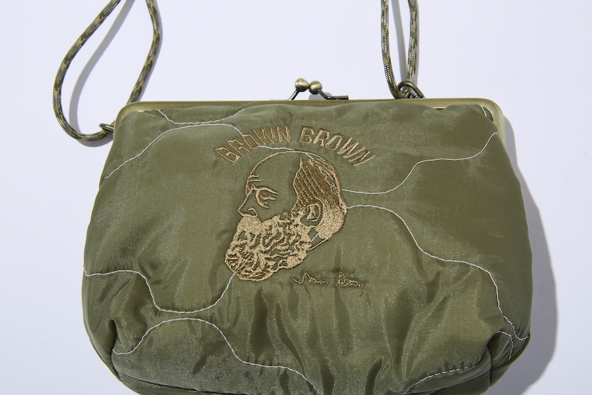 フロントには同ブランドのアイコン的存在である“Mr.Brown”を大胆にステッチ。ベースとなる光沢感のある生地と馴染むように、滑らかな質感が生まれるように丁寧な刺繍が施されています。