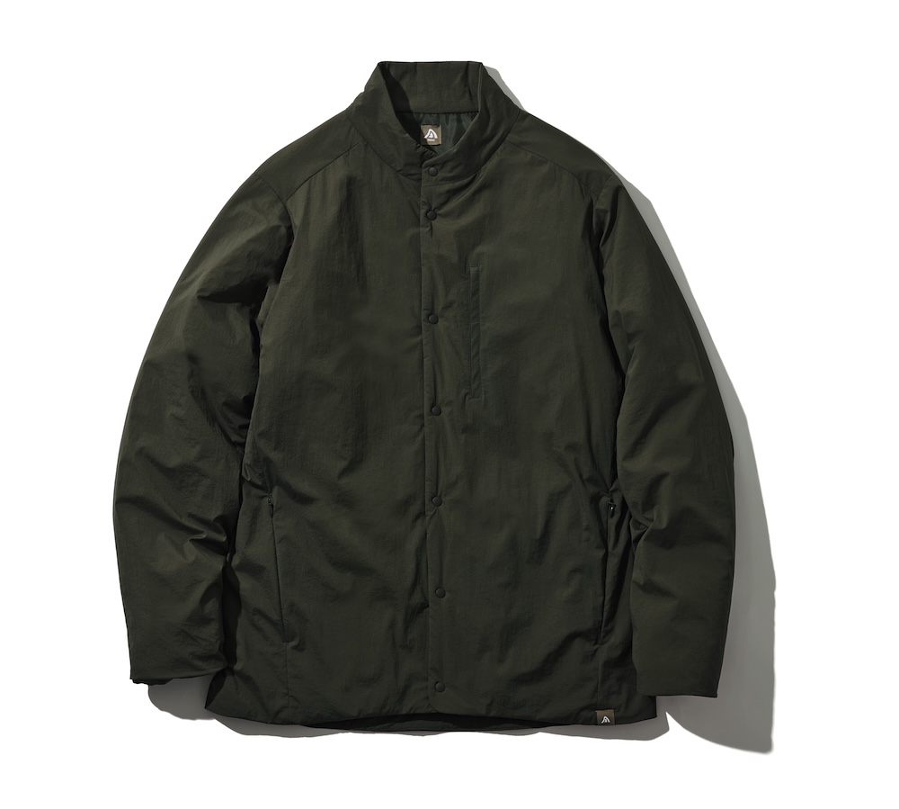 インサレーションジャケット。ベストと同様、超軽量繊維のオクタや、重要な部位に中綿ソロテックス×エアロカプセル エコを用いた逸品。表地はクリスピーナイロンで動きやすさも担保。