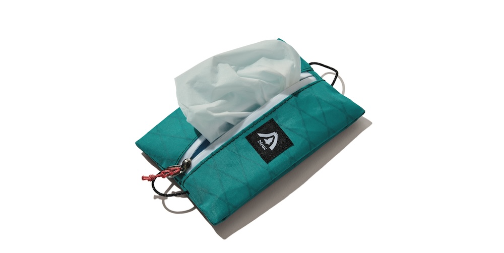 開始当初から続くフラッグシップ的ギアでもあるポケットティッシュケース。ループにカラビナを付ければ登山中にもザックを下ろさずに、その1枚をすぐに誰かに差し出すことができる。