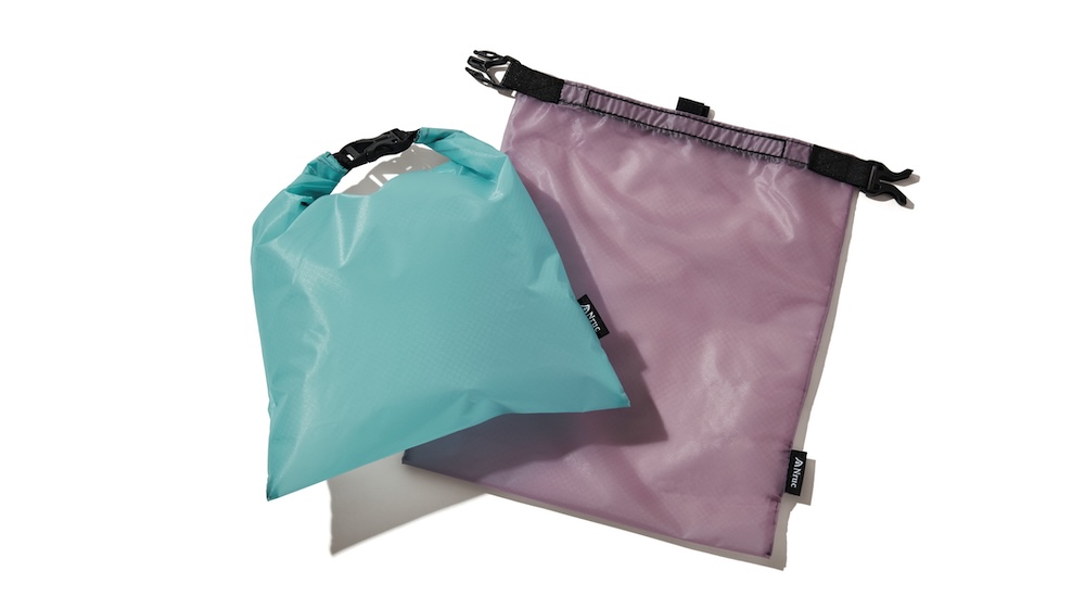 シンプルなお菓子袋。コーデュラリップの表面テロテロ感と絶妙な透け感もさることながら、滑りが良い素材だから、パッキング時のわずかな隙間にもスルスル収納できるのも魅力。9色展開。