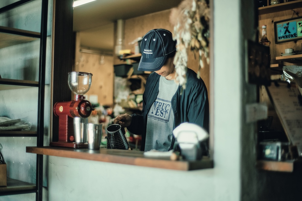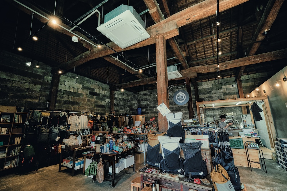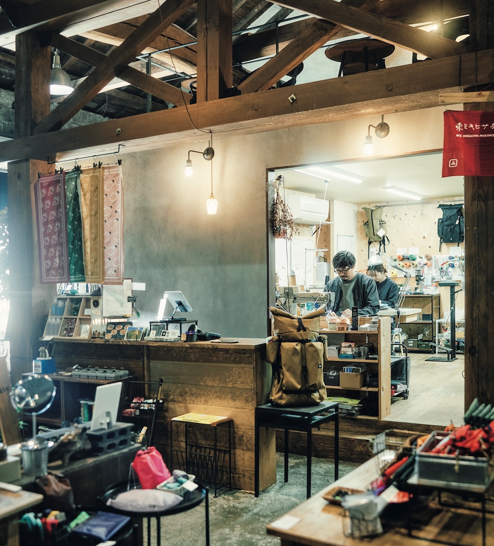 ニッチな立ち位置ではあったが、かつて務めたアウトドア業界での信頼関係もあり、 取扱い店は意外に増していったという。一年で小さなアトリエを構え、週末にオープンしていたら、東京からも続々顧客が訪れてくるようになり、みるみるうちに事業が拡大していった。現在の石蔵(テナント) が空いているという情報を聞き、6年前に移転し店舗を構えることに。店には縫製スペースに加え、自社製品を揃えた店舗と、登山用品のセレクトショップ、コーヒースタンドを併設。従業員も増えているが、井上さんも自ら縫い、NPOを立ち上げ、町おこしの一貫でイベント「ジェントルハイカースタンド」を運営するなど、変わらず忙しい様子だ。
