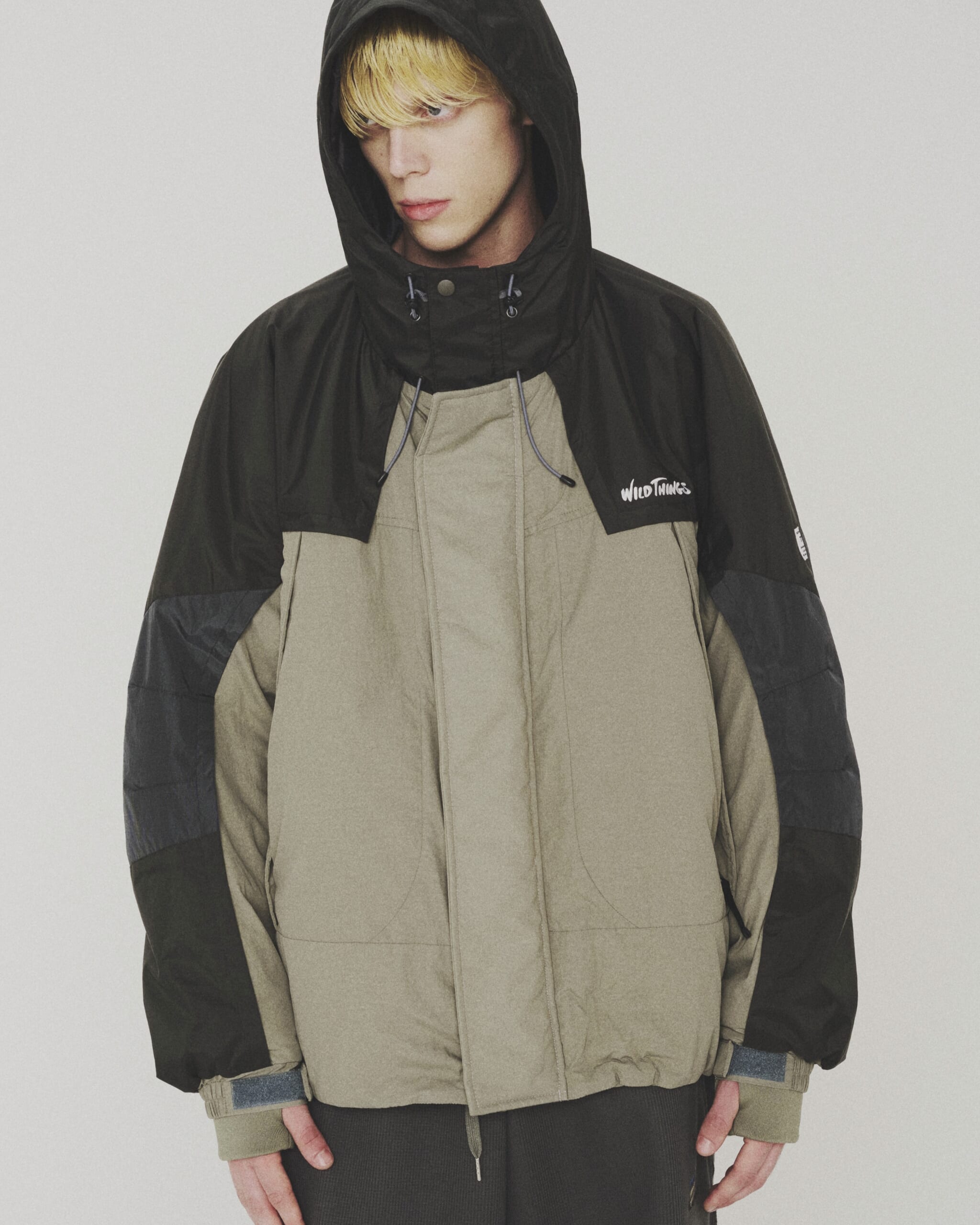 「ワイルドシングス」の代名詞的なモデル“MASSIF JACKET”をデザインベースに、通称モンスターパーカと言われる“PCU LEVEL7 MONSTER PARKA”をドッキング。