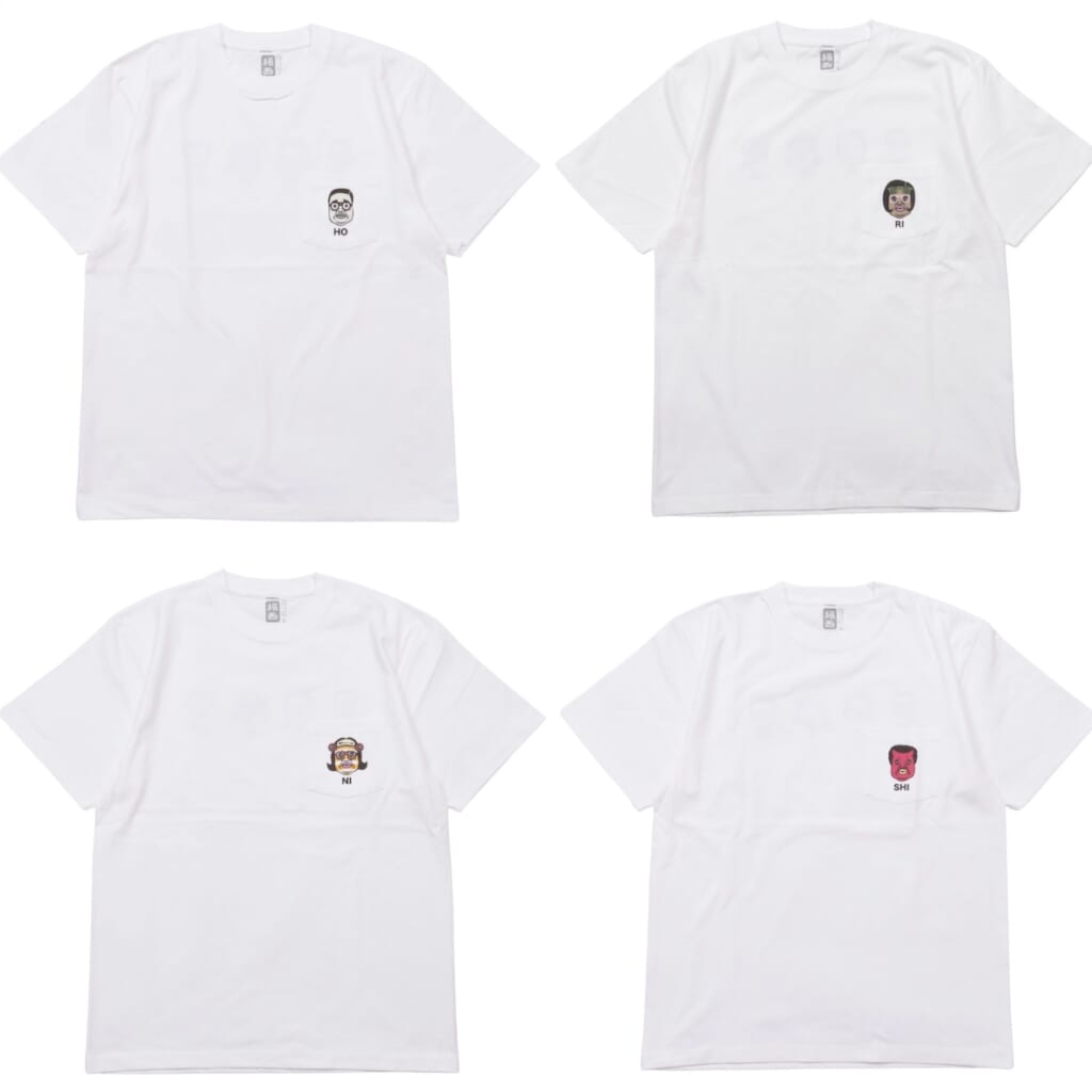 くっきー ×ほりにし HO POCKET TEE、くっきー ×ほりにし RI POCKET TEE、くっきー ×ほりにし NI POCKET TEE、くっきー ×ほりにし SHI POCKET TEE 各¥6600