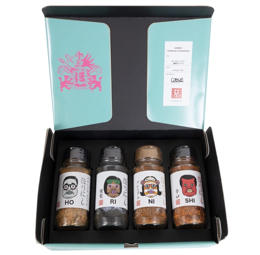 和歌山県発の人気アウトドアショップ「Orange(オレンジ)」が生み出した万能スパイス「アウトドアスパイス ほりにし」と、COOKIE!としての創作活動でも知られる芸人「野性爆弾 くっきー!」がコラボ。「ほりにし」が目指す”美味しさのその先”を、アートとの融合で表現する全7型が登場した。