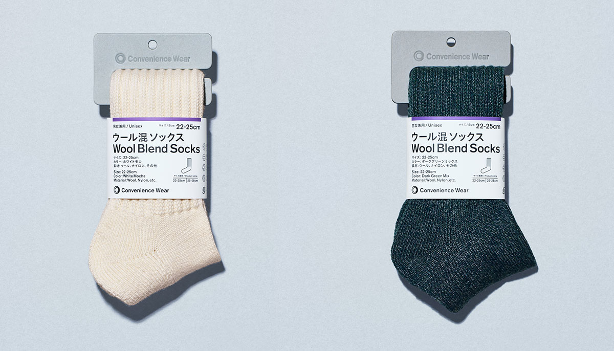 『ファミリーマート』のオリジナルアパレルブランド「コンビニエンスウェア」から、ファッションデザイナーの落合宏理氏との共同開発のもと、これからの季節にぴったりな“ウール混ソックス”が登場しました。