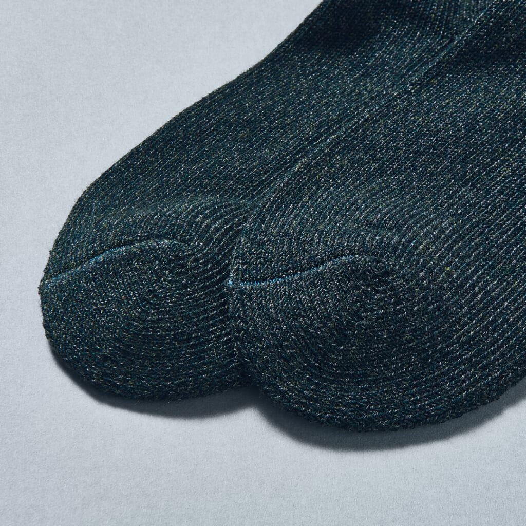 抗菌防臭仕様で、ウールならではの吸湿・保温性が高く、長時間の着用でも蒸れにくく快適に過ごせ、キャンプやアウトドアシーンでも心強い一本です。足先の縫い目には、さりげなく赤や青の糸をアクセントに使用し細部まで丁寧な仕上がり。サイズ展開は22cm-25cmと25cm-28cmの2タイプ。
