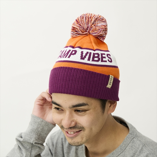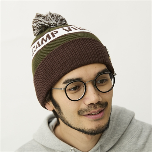 ボディと同じマルチカラーで構成した、やや大きなボンボンがトップに。折り返し部分に施したピスネームがアクセントになった、着こなしのメインになるデザイン性の高い一品。