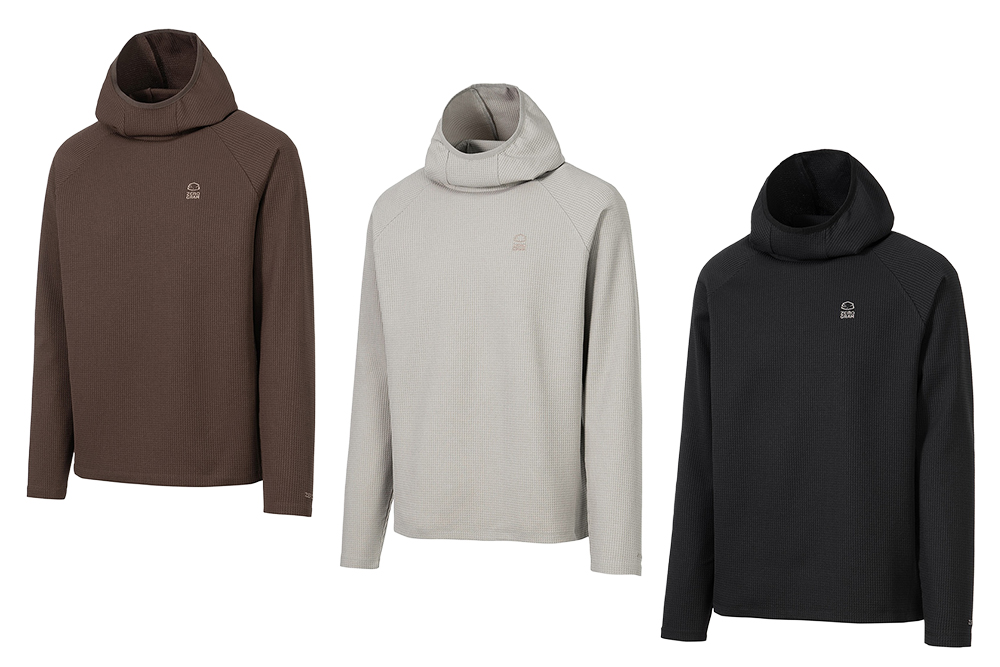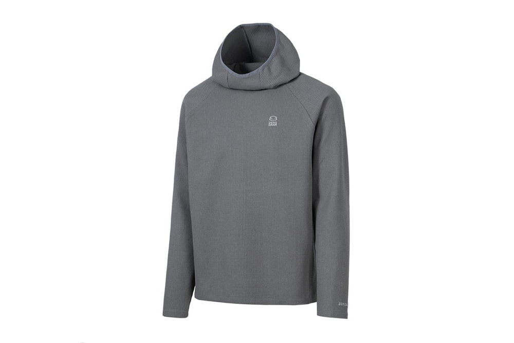 頭部と首まわりをしっかりと保温する、フーディータイプのベースレイヤー。着心地のいいワッフル構造の生地は、Seawool®とSorona®、2つの素材を混紡したもの。コットンのような肌触りで、ちょどいいストレッチ性と高い耐久性を持っている。
