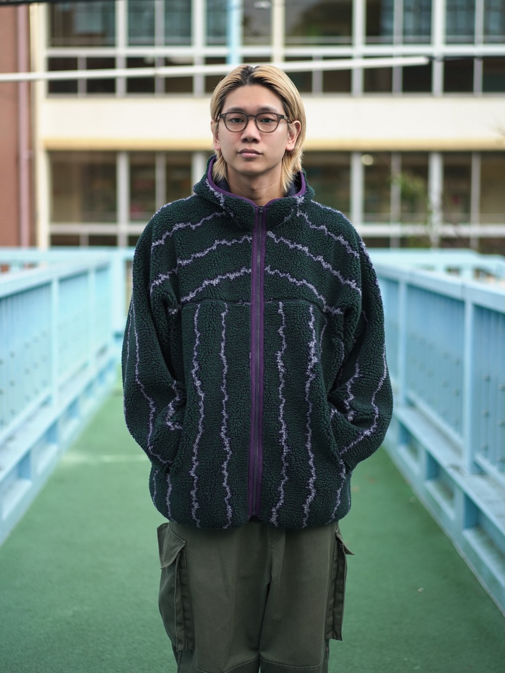 アウトドアブランドが1990年代に発表したサンダー柄のフリースをモチーフに、今季はジップタイプを製作。着丈は短め、身幅はゆったりとしたボックスシルエットでインナー使いはもちろん、アウターとしても着用することができます。