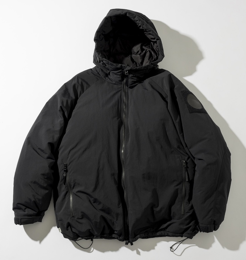 ともにダウンを詰め込みつつ、ゆったりとしたサイズ感だけにインナーにヘビーオンスのスウェットとの重ね着が可能に。本格的なミリタリーウエアと同様のミニマルな表情に仕上げつつ、街に馴染む質感とアウトドアユースの高いスペックを兼ね備えた一着です。