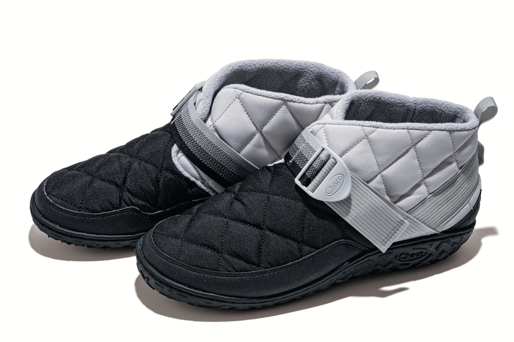 撥水加工済みキャンバス素材のアッパーに、内側はソフトフリースをあしらったキルティングシューズ。チャコならではのフィット調整ストラップを備え、グレー×ブラックの2トーンカラーも高ポイント。¥13970