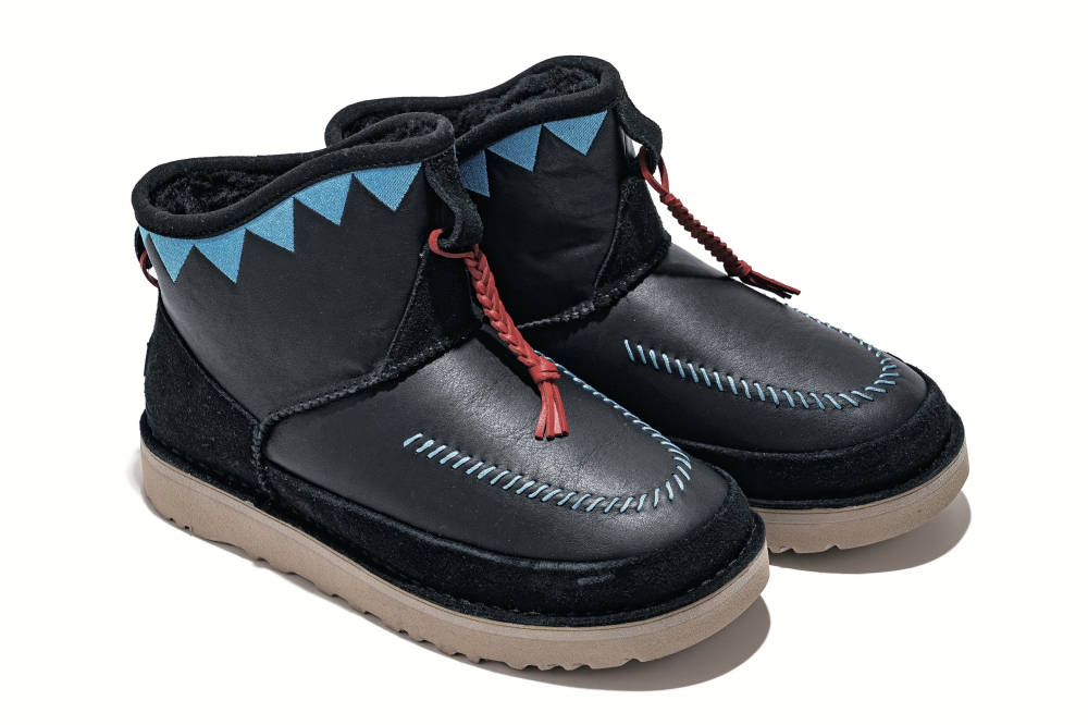 表革やスエードなど複数のレザーを合わせたレイヤードアッパーに、リベレイダーズのアイコニックなトライアングルパターンやドローコードをあしらい、ネイティブ感のあるルックスに仕上げた注目コラボ。¥61600