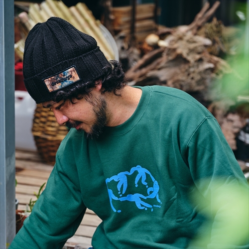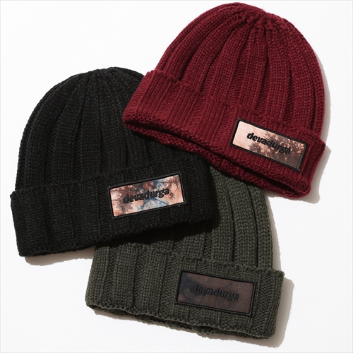 一年を通して使えるアクリルボディのニットキャップ。ポイントは折り返し部分に施されたロゴラベルで、同ブランドらしく泥染や藍染を施してハンドクラフトの要素をプラス。