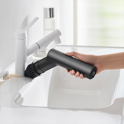付属する伸縮ロッドと6種類のブラシにより、バスルームやキッチンなど屋内のあらゆる場所に対応するクリーナー。無駄のないシンプルなデザインはインテリアの一部に。