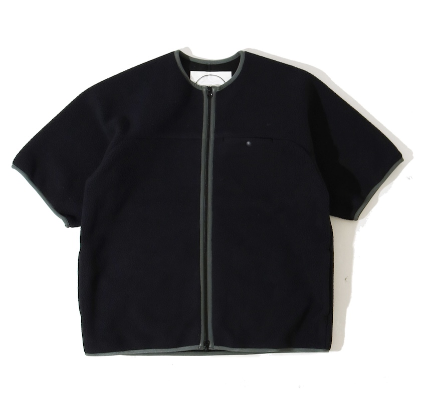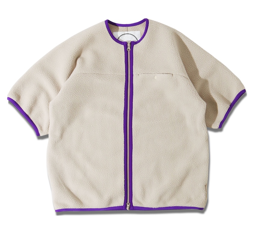 襟元・前立て・袖口・襟元と、淡いカラーで彩ったパイピングがポイント。レトロなアウトドアウエアがデザインソースで、レイヤードが楽しめるようにショートスリーブタイプにデザインされています。