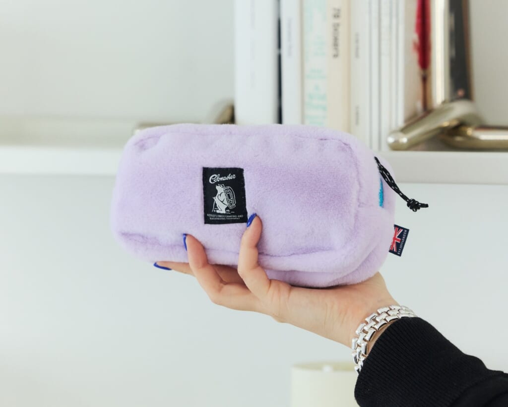 使い勝手の良いポーチも2サイズを展開(Sは 11 × 6.5 × 3.5cm、Mは 18 × 9 × 5cm)。ガジェット類やリップなど身の回りのものを入れるのにぴったり! 本体にはDカンが備わるのでリュックなどに取り付けてアクセ感覚で楽しめる。