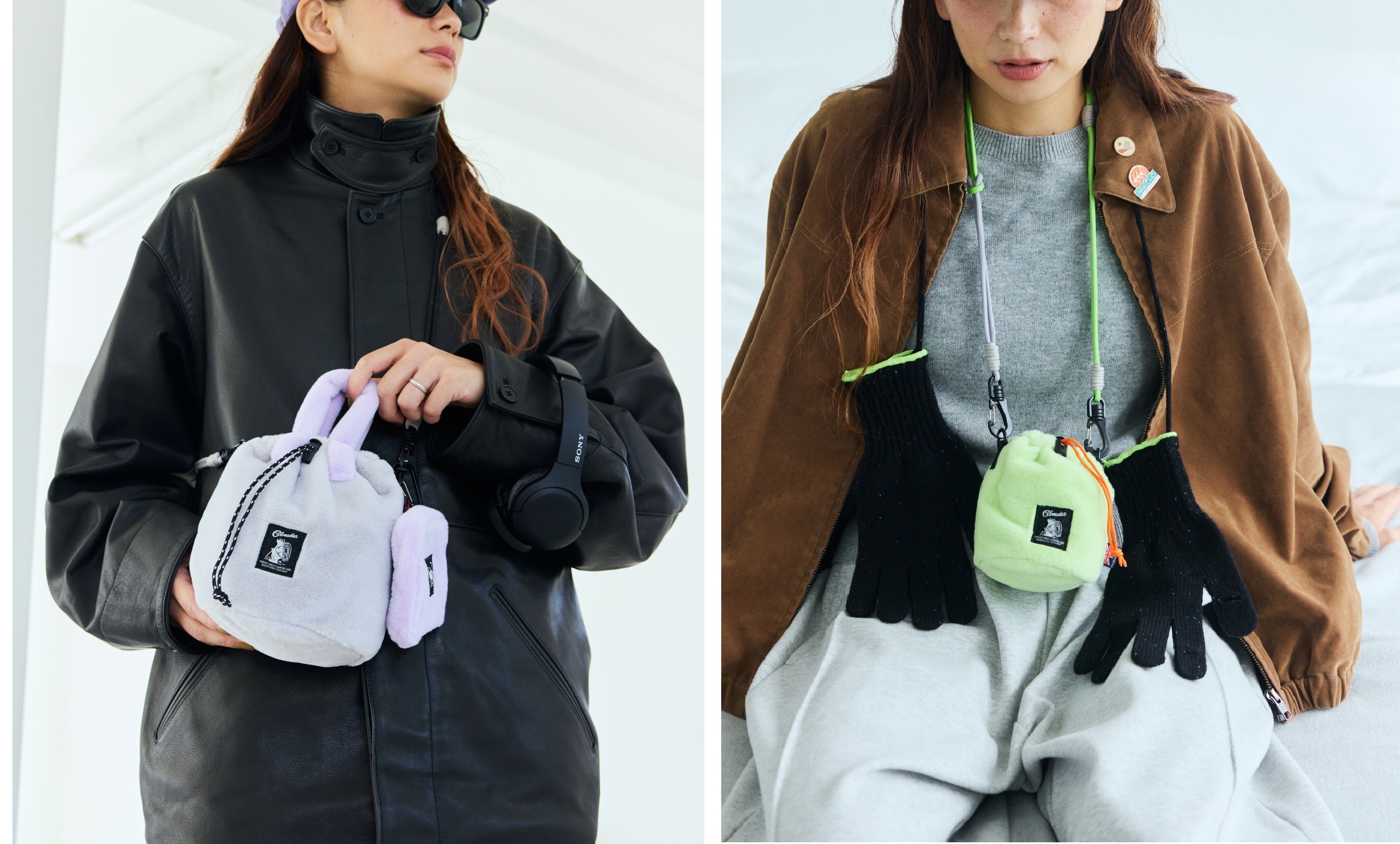 【左】別注Fluffy Drawstring bag ¥4070/【右】別注Fluffy Drawstring bag mini ¥2997