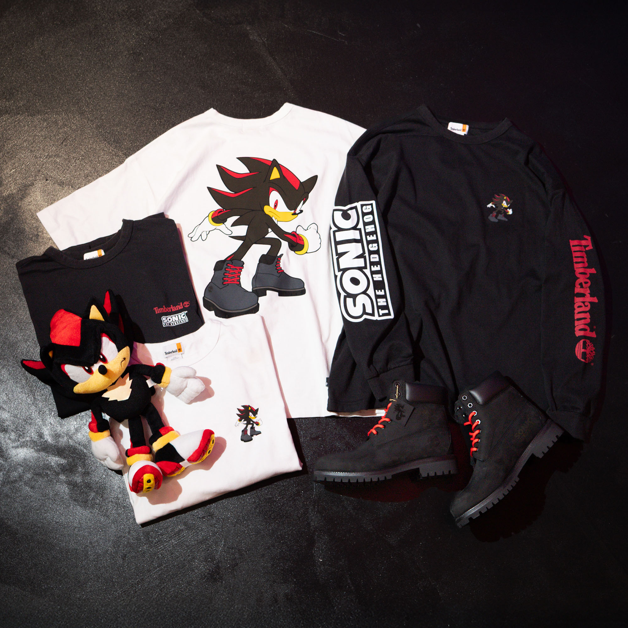 そして、このスペシャルなシャドウをデザインとして落とし込んだ 6インチブーツに加え、長袖Tシャツ、半袖Tシャツの全3型を展開。長袖Tシャツは、特別仕様のシャドウを左胸にワンポイントであしらい、右腕に「ソニック」シリーズのタイトルロゴを、左腕にレッドのティンバーランドロゴをデザイン。