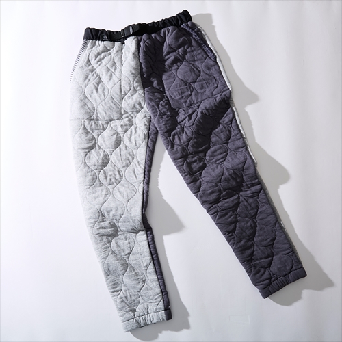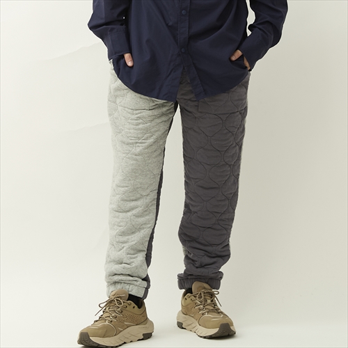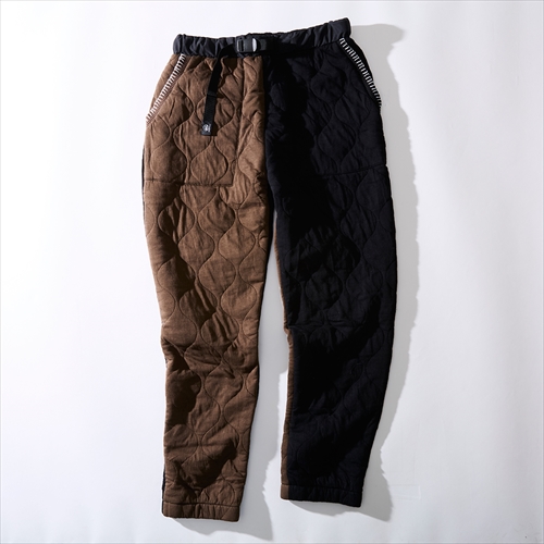 ひょうたん型のキルトステッチを施したミリタリーテイストのデザイン。中綿入りで優れた保温性を発揮し、表地に柔らかなコットンを使用したルームウエアにもなる一本です。