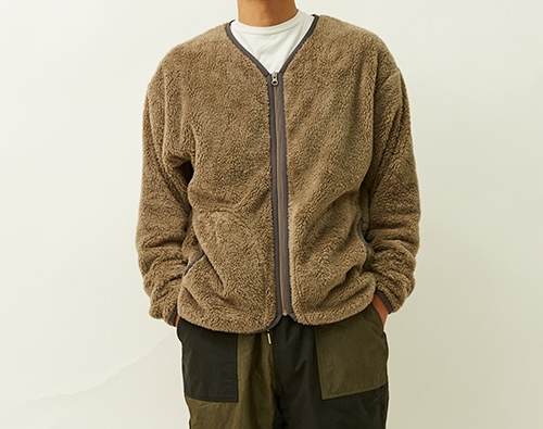 暖かな空気層を生み出す、毛足が長くて肉厚のあるフリースボディを採用。レイヤードの幅を広げるカーディガンタイプで、一枚で着こなせるうえにインナーとしても活躍。