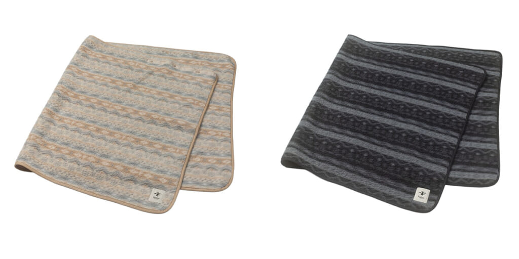 コレクションのラインナップには、オリジナルの総柄フリースを使ったジャケットに加えて、スリットに通すだけで首に巻けるマフラー、ドットボタン付属でケープのように着用できるブランケット、吸汗速乾性、軽量性、ストレッチ性に優れたデルタ素材を使用したクルーネックTを加えた4型が揃っている。