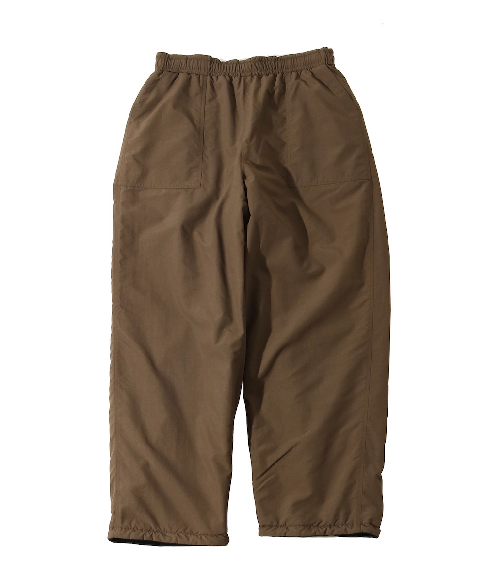表地は速乾性、UVカットに優れたサプレックスナイロン、裏地は米軍が採用していたフリースを使用したリバーシブル仕様のファティーグパンツ。シルエットも太めで、イージータイプというのも魅力的ですね。