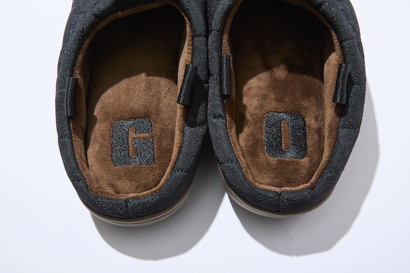 アッパーの印象的なデザイン、落ち着いた2トーンカラーのみならず、フットベッドの左右にGとOのロゴマークが刺繍されているのも注目。自宅やキャンプサイトで脱いでも存在感を発揮してくれます。