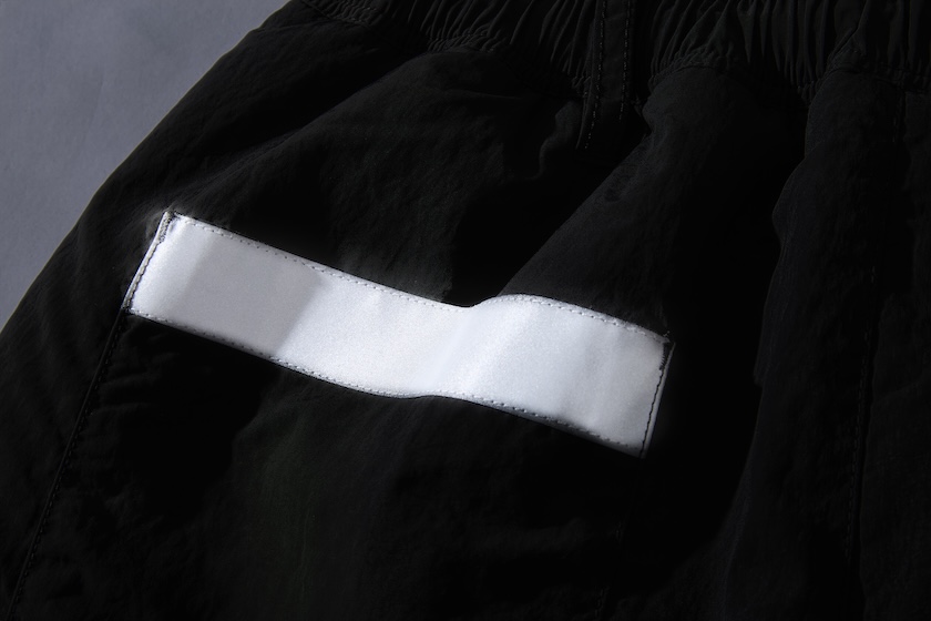 インラインにはないバックポケットに配したフレクターテープ。自転車やバイクを夜間に乗ったり、暗闇のキャンプシーンで行動したりと、光を受けると発光するアクティブ派には嬉しいディテールです。
