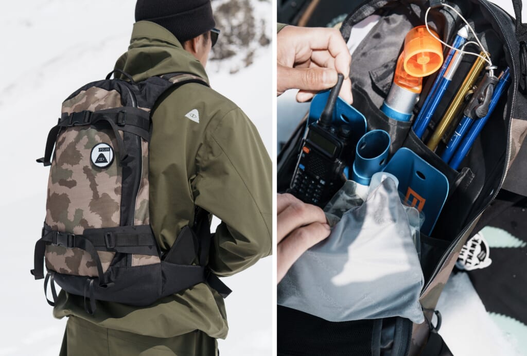 さらにプロスノーボーダー、西田洋介氏が携わるアウトドアブランド「RAIN OR SHINE(レインオアシャイン)」とのコラボバッグもリリース予定とのこと。こちらもウインターースポーツユーザーをターゲットにした機能性を持たせているので要チェック。いずれも容量は13Lとなっている。