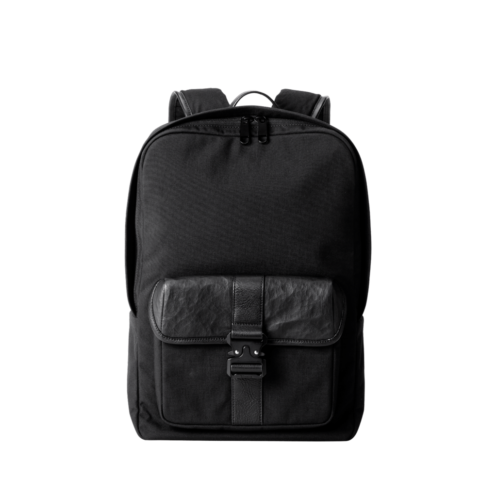 ブラックアウトされたスマートなリュックはクール系スタイルにすんなるはまる。サイズは縦 41.0 × 横 28.0 × 底マチ 11.0cmと絶妙で、コの字に開くメインコンパートメントには、14インチPCも収納可。トロリースリーブも備えているからビジネス用途にもOKだ!