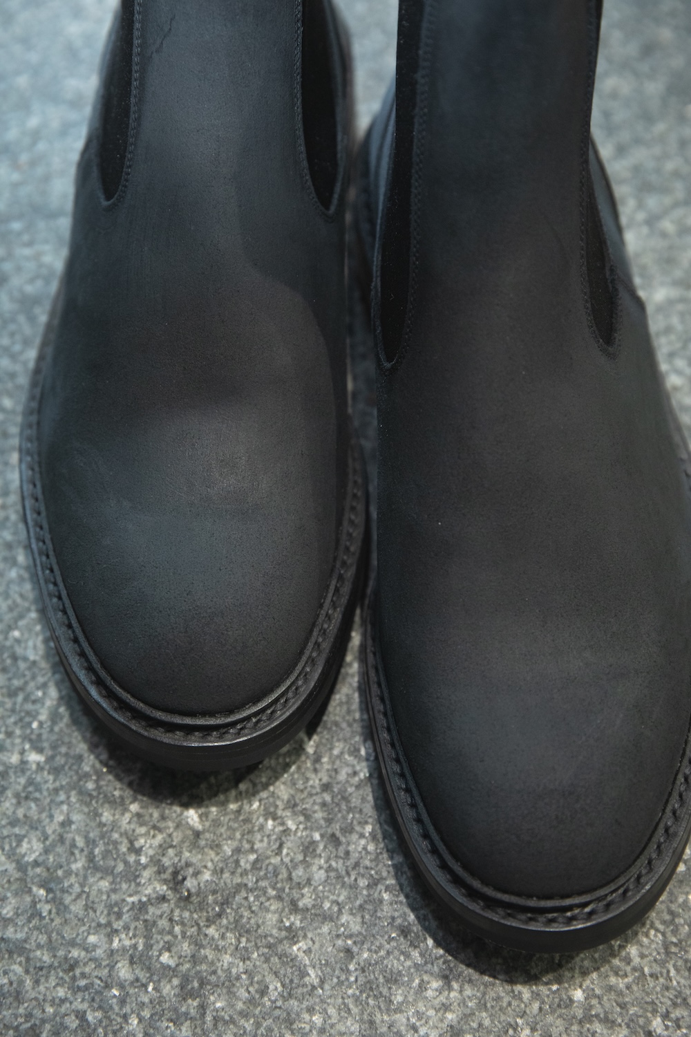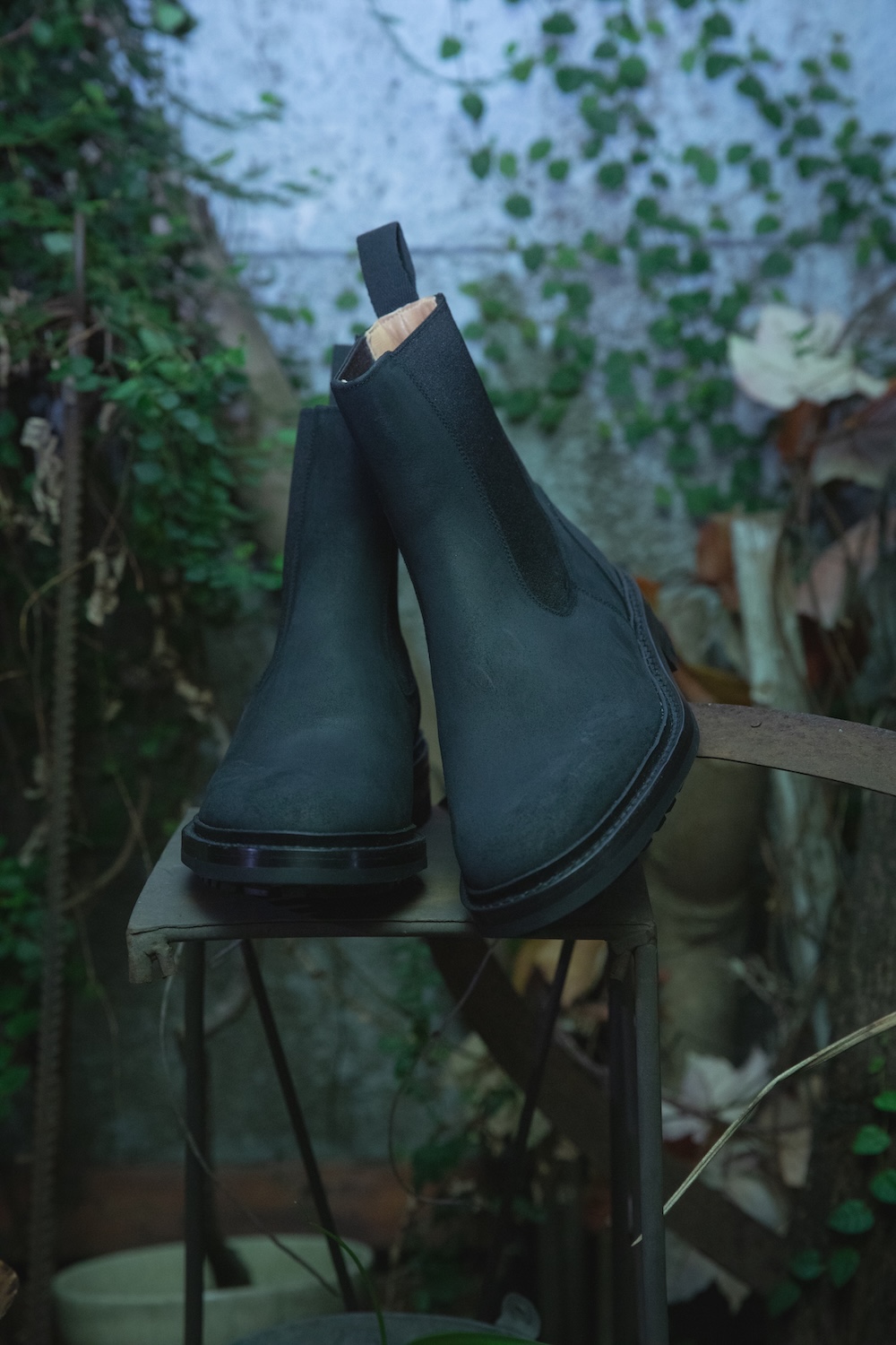 今回スポットを当てたのは、サイドゴアブーツ。アッパーには、「トリッカーズ」ではすでに廃盤となってしまった”Waxy Commander”というスエードにワックスを塗り込んだ撥水レザーを使用。履き込んでいくうちに現れる経年変化も見どころです。