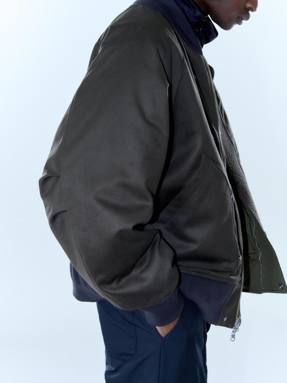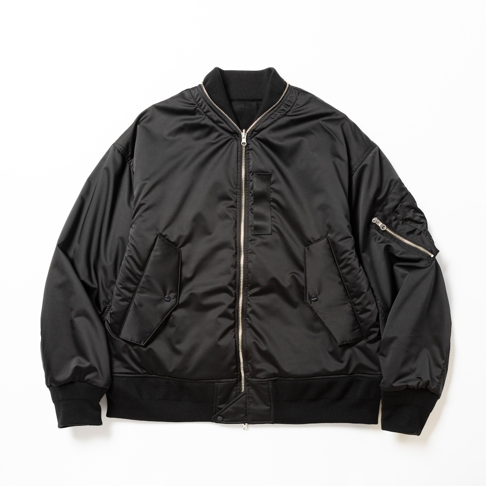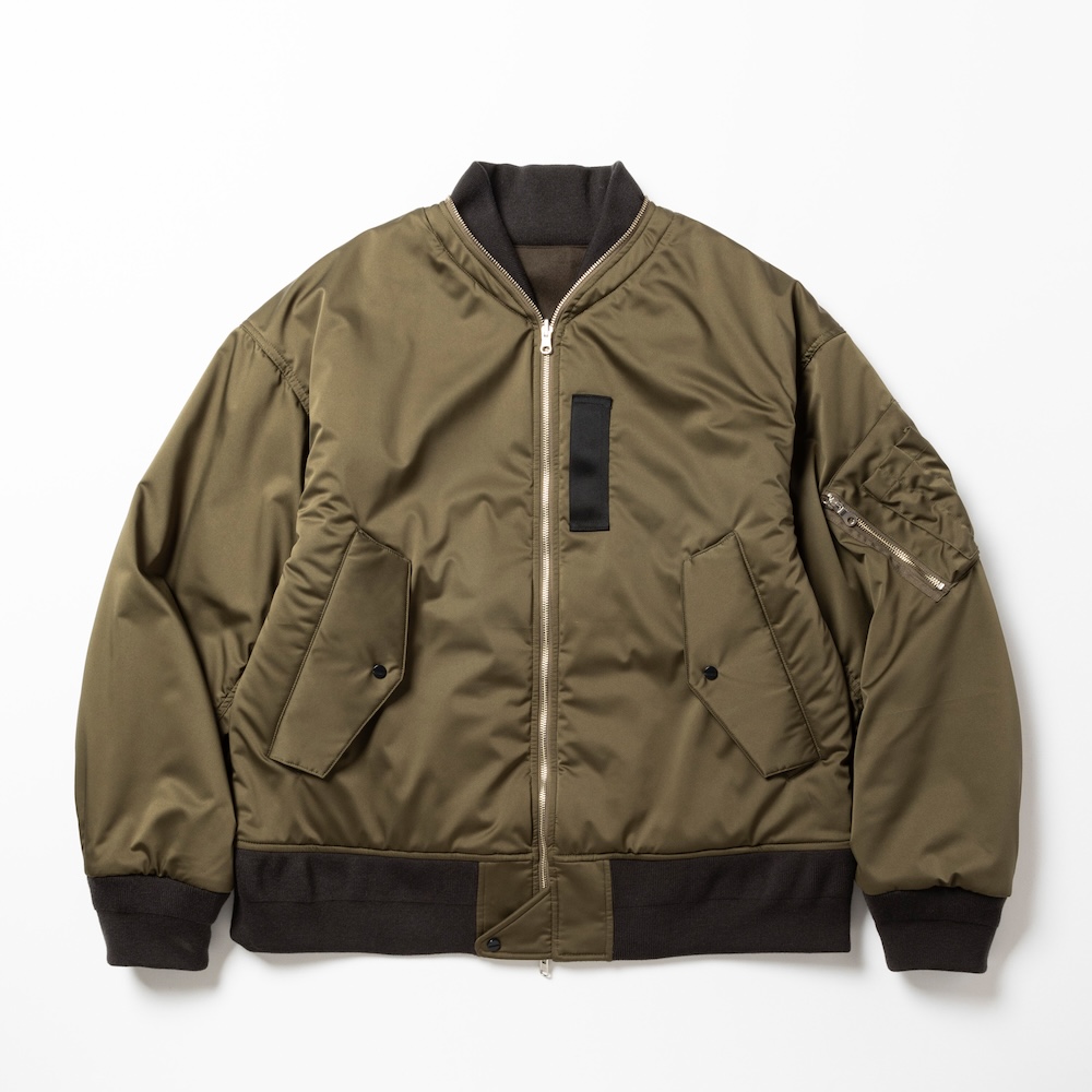 メゾンでも使用されているイタリアの高級ファブリック『LIMONTA』社製の高収縮ツイル素材とカシミアビーバーを使用したリバーシブルタイプのMA-1。撥水、防風、透湿などの機能も持っているので、様々なシーンで着用可能です。また、中綿にはプリマロフトダウンが封入されています。