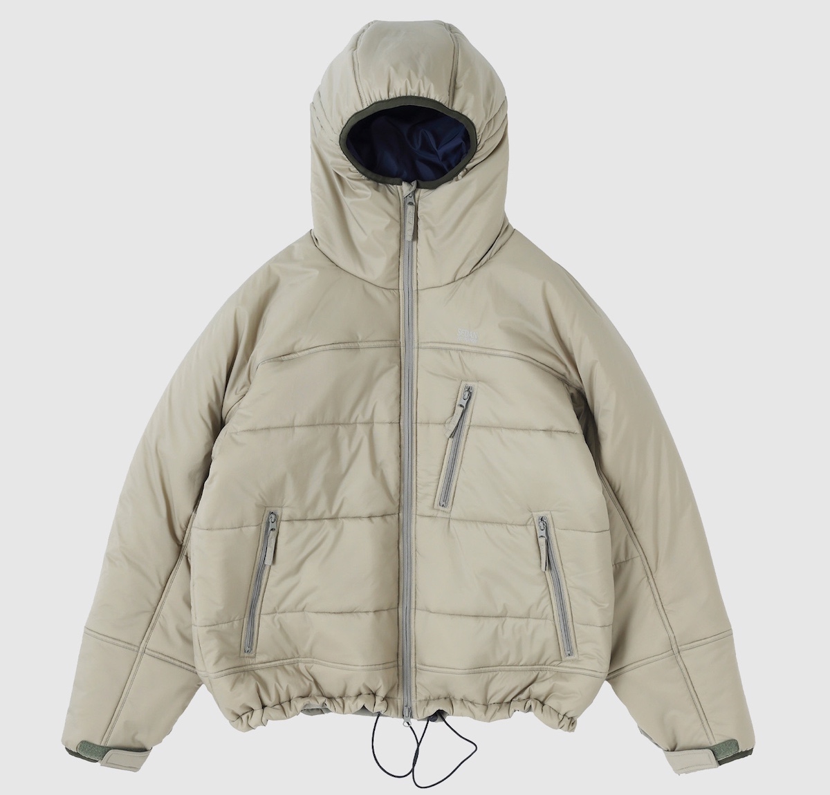 デザイナーの藤原将平氏が大好きな人気アウターをベースに、軽量で洗える中綿ジャケットを。シェルに使用するリサイクルナイロン100%のマイクロリップ生地は防風性に優れ、適度なマット感があって使いやすい。大きな2つの内ポケットも便利。