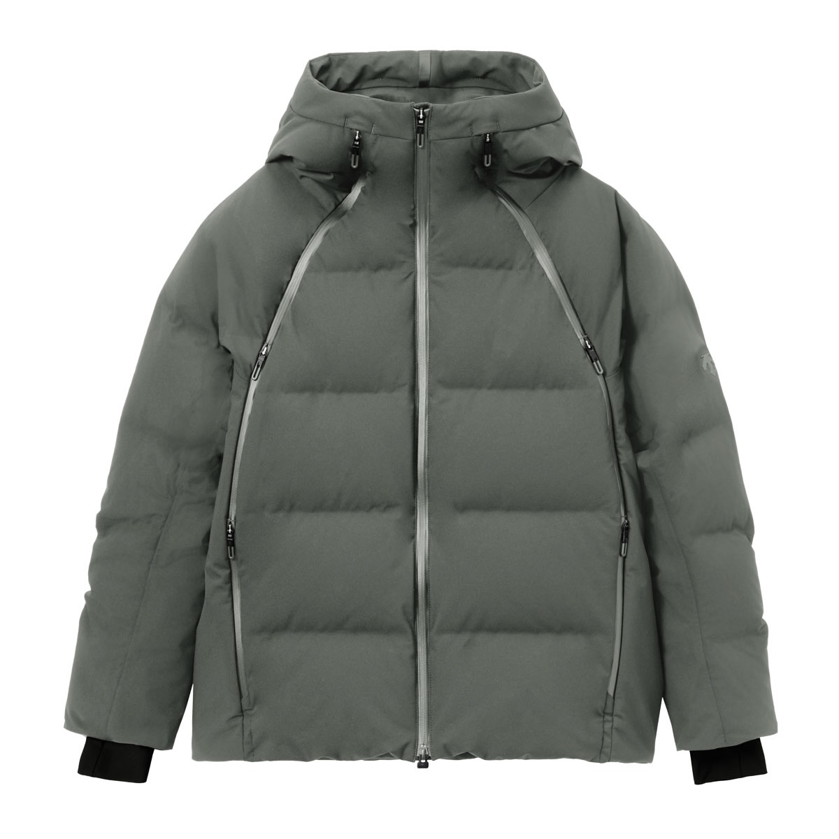 「DESCENTE」のスピリットマークを想起させる、首元から裾まで走らせた3本のファスナーが目に入るモデル“TRIDENT”。左右のファスナーはベンチレーション、ハンドウォーマー、ポケットと三つの機能を集約。表地には、優れた耐久性を誇る CORDURA® 製のストレッチ素材を採用。
